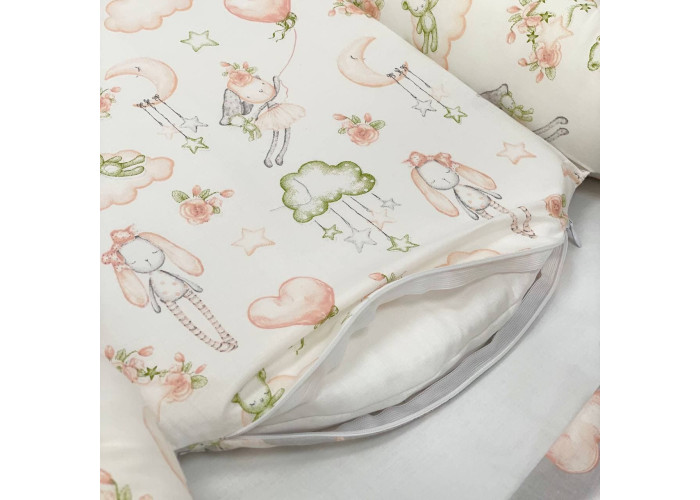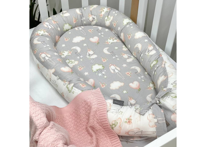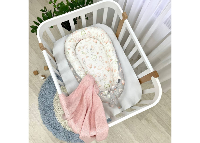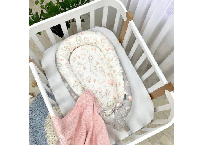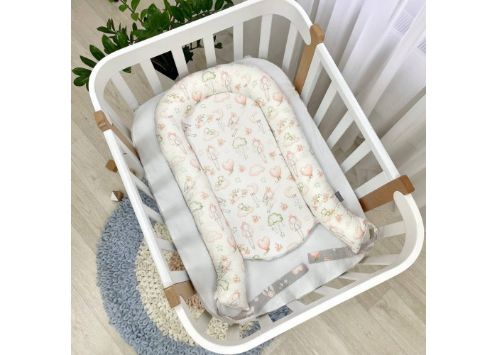 Гніздечко-кокон-це невеликий, ергономічний, плоский матрац з м'якими обмежувальними бортиками по всьому периметру заввишки 10 см. Тканина чохла: поплін (100% бавовна)