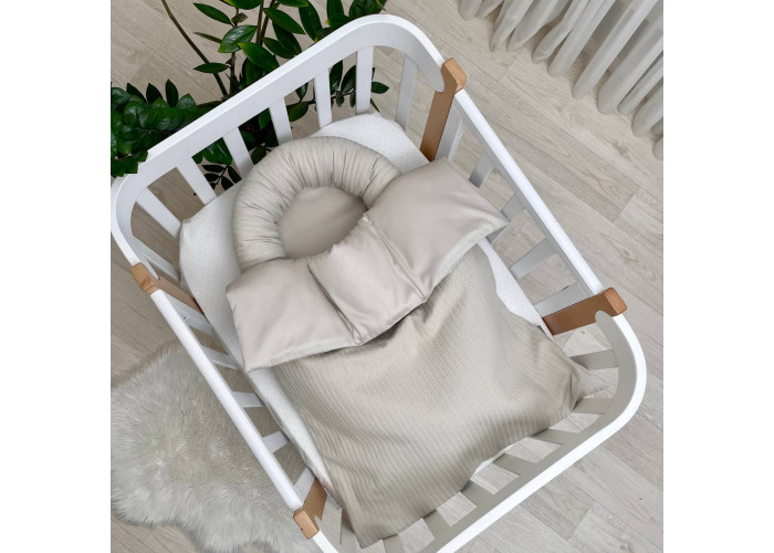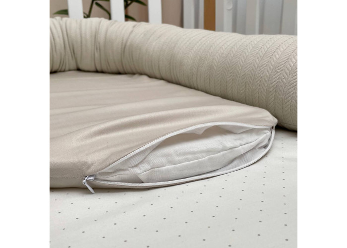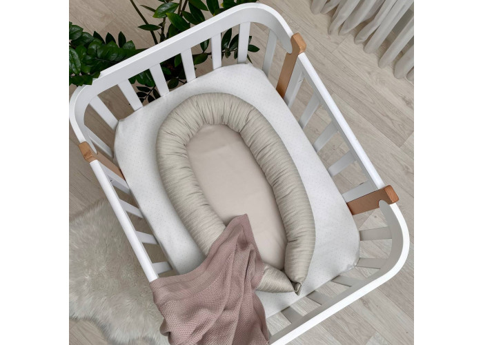 Кокон DreamLand - це невеликий, ергономічний, плоский матрац з м'якими обмежувальними бортиками із трикотажної тканини "косичка" по всьому периметру заввишки 10 см. Матрацик пошитий із сатину (100% бавовна). Наповнювач матраца - піна, пружний, сучасний, модифікований матеріал, який рівномірно розподіляє навантаження, завдяки чому малюк почуває себе затишно і комфортно. Чохол матраца пошитий з мікрофібри. Наповнювач для бортиків - силіконізоване волокно. Бортики фіксуються за допомогою кнопок.