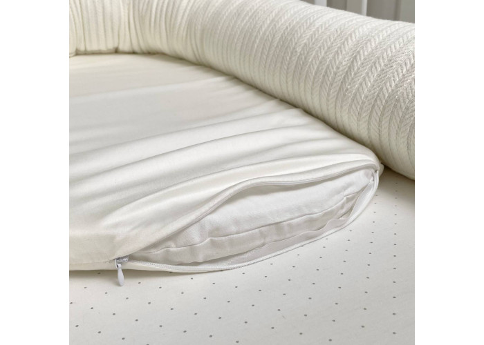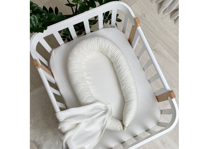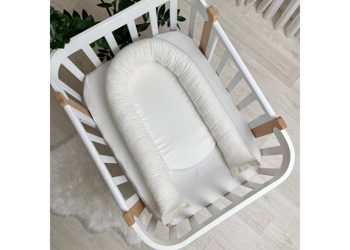 Кокон DreamLand - це невеликий, ергономічний, плоский матрац з м'якими обмежувальними бортиками із трикотажної тканини "косичка" по всьому периметру заввишки 10 см. Матрацик пошитий із сатину (100% бавовна). Наповнювач матраца - піна, пружний, сучасний, модифікований матеріал, який рівномірно розподіляє навантаження, завдяки чому малюк почуває себе затишно і комфортно. Чохол матраца пошитий з мікрофібри. Наповнювач для бортиків - силіконізоване волокно. Бортики фіксуються за допомогою кнопок.