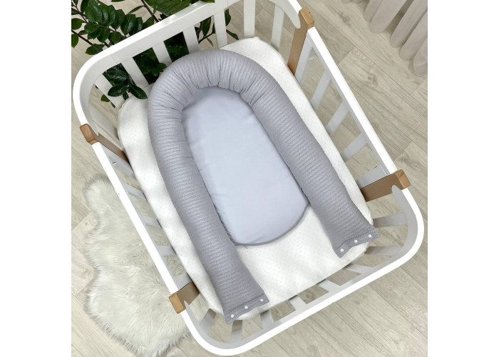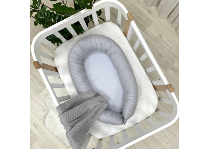Кокон DreamLand - це невеликий, ергономічний, плоский матрац з м'якими обмежувальними бортиками із трикотажної тканини "косичка" по всьому периметру заввишки 10 см. Матрацик пошитий із сатину (100% бавовна). Наповнювач матраца - піна, пружний, сучасний, модифікований матеріал, який рівномірно розподіляє навантаження, завдяки чому малюк почуває себе затишно і комфортно. Чохол матраца пошитий з мікрофібри. Наповнювач для бортиків - силіконізоване волокно. Бортики фіксуються за допомогою кнопок.