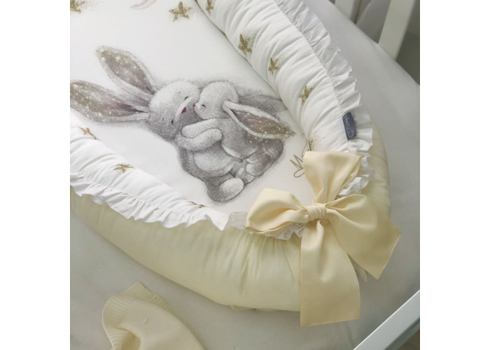 Гніздечко-кокон-це невеликий, ергономічний, плоский матрац з м'якими обмежувальними бортиками по всьому периметру заввишки 10 см. Тканина чохла: сатин (100% бавовна)