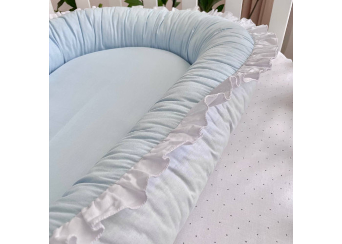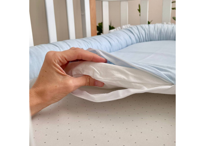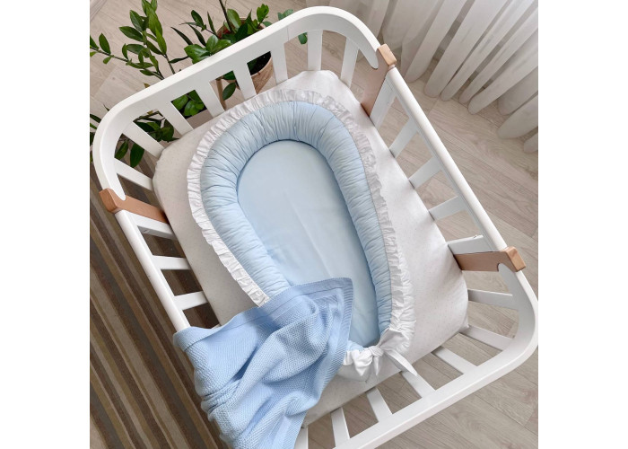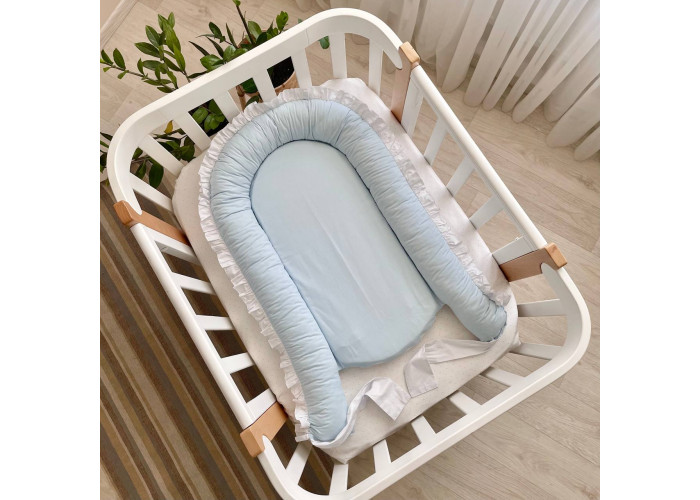 Гніздечко-кокон-це невеликий, ергономічний, плоский матрац з м'якими обмежувальними бортиками по всьому периметру заввишки 10 см. Тканина чохла: поплін (100% бавовна)
