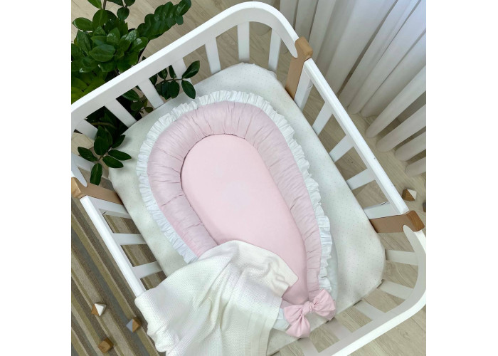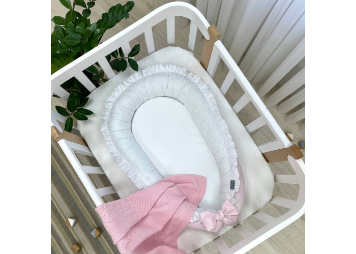 Наповнювач матраца - піна, пружний, сучасний, модифікований матеріал, який рівномірно розподіляє навантаження, завдяки чому малюк почуває себе затишно і комфортно. Чохол матраца пошитий з мікрофібри. Бортики можна стягнути спеціальною ниткою, яка вже вшита в кокон і зафіксувати бантом, таким чином можна зменшувати, або збільшувати розмір кокона-гніздечка.