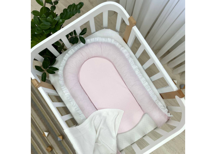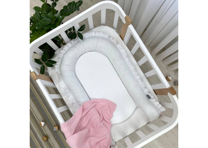 Гніздечко-кокон-це невеликий, ергономічний, плоский матрац з м'якими обмежувальними бортиками по всьому периметру заввишки 10 см. Тканина чохла: поплін (100% бавовна)