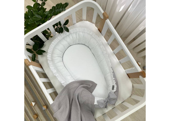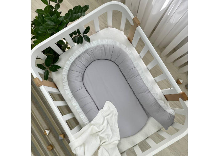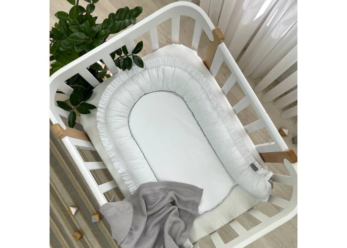 Гніздечко-кокон-це невеликий, ергономічний, плоский матрац з м'якими обмежувальними бортиками по всьому периметру заввишки 10 см. Тканина чохла: поплін (100% бавовна)