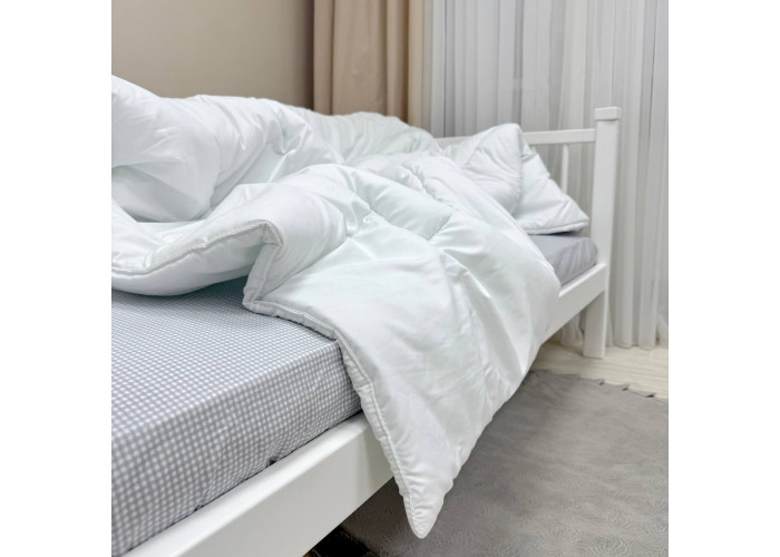 Колір: білий. Основний матеріал: мікрофібра. Матеріал наповнювача ковдри: силіконізоване волокно.