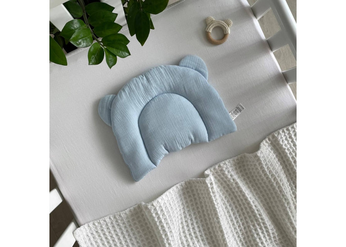 Подушка з вушками муслін блакитний Маленька Сонямусліноднотонний