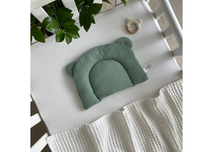 Подушка з вушками муслін малахіт Маленька Сонямусліноднотонний