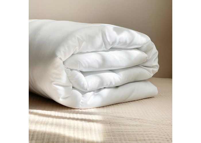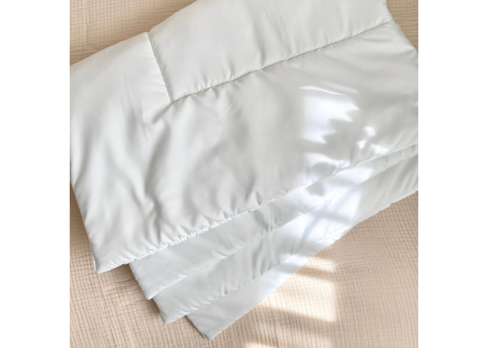 Підходить як для стандартних, так і для овальних ліжечок. Колір: білий. Основний матеріал: мікрофібра. Матеріал наповнювача ковдри: силіконізоване волокно.