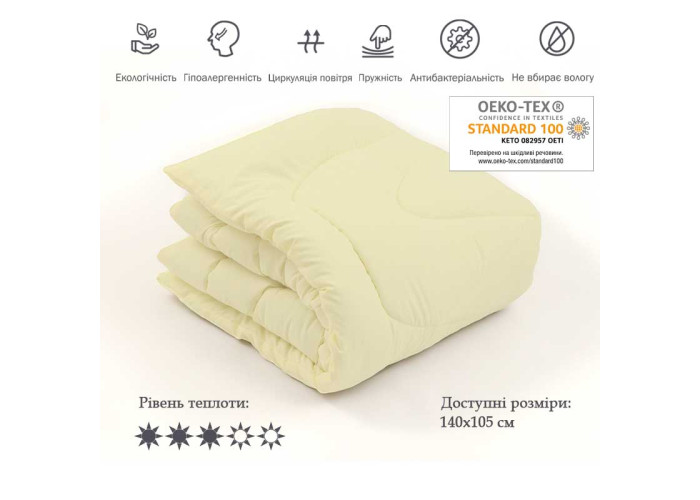 Наповнювач силікон: виготовляється з силіконізованого поліефірного волокна. Даний наповнювач найбільш практичний і зручний у використанні. Не викликає алергічних реакцій, не вбирає вологу і запахи. Ковдра з таким наповнювачем легка та дуже приємна на дотик. Вироби з таким наповнювачем чудово тримають форму, яка не змінюється в процесі тривалого використання і неодноразового прання. Ковдра дитяча 140х105 силіконова — це якісний текстиль для комфортного та здорового сну. Виріб виготовлений з , що забезпечує м’якість, зносостійкість та довгий термін служби. Наповнювач добре утримує тепло, пропускає повітря та підходить для щоденного використання. Розмір ідеально підходить для Ковдра. Продукція бренду Руно відповідає сучасним стандартам якості та безпеки. Ковдра дитяча 140х105 силіконова легко доглядати, підходить для дому, квартири або подарунка. Замовляйте Ковдра дитяча 140х105 силіконова в інтернет-магазині Green-Farm з доставкою по всій Україні, швидкий зв'язок у Вайбер +380661920048