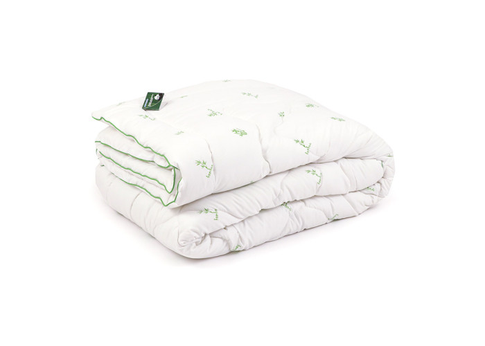 Наповнення ковдри складається на 50% з бамбукового волокна, а на 50% – з поліефірного волокна – це ідеальне відсоткове співвідношення матеріалів. Поліефірне волокно додають, щоб зробити ковдри пишними, м'якими і в той же час легкими, а враховуючи той факт, що поліефірного волокна не більше 50% на якісних характеристиках виробів це не позначається. Ковдра з бамбукового волокна мало важить, забезпечує оптимальну теплорегуляцію та гарний повітрообмін. Щоб виріб зберігав тепло, необхідно правильно підібрати його розмір залежно від параметрів ліжка, по ширині ковдра повинна бути на 40-50 см більше матраца.