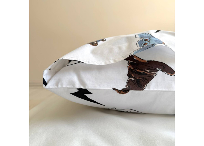 Догляд: наволочку можна прати в делікатному режимі при температурі 30-40 градусів з віджиманням до 800 обертів. Сушити необхідно в розправленому вигляді, далеко від прямих сонячних променів і обігрівальних приладів. Прасування при середньому температурному режимі. Перед тим, як покласти комплект на тривале зберігання, необхідно видалити всі плями.