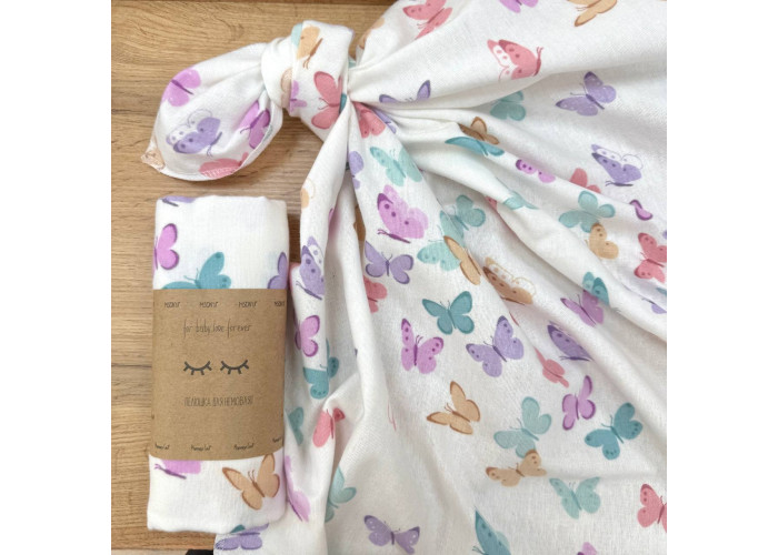 Пелюшка фланель Метелики рожево-мятні