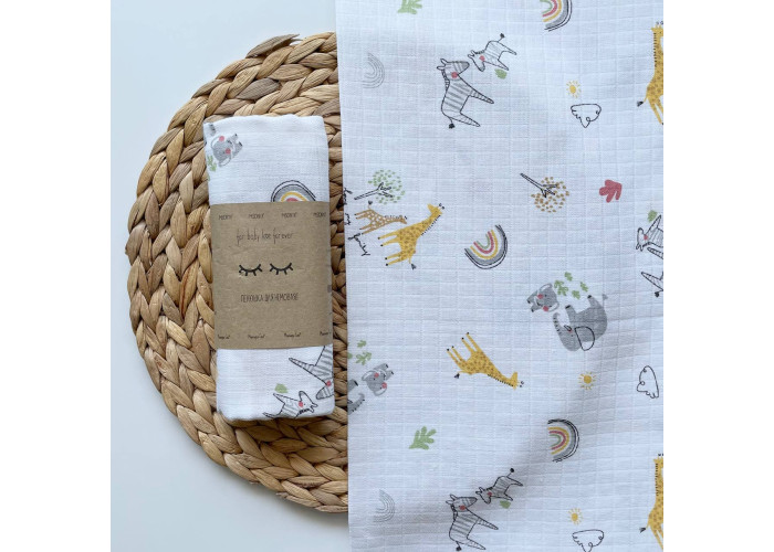 Пелюшка з мусліну - MustHave для кожного новонародженого. Гіпоалергенна, гігієнічна, особливо незамінна в літню спеку. Відмінно вбирає вологу, захищає від перегріву і ультрафіолетових променів ніжну шкіру малюка. У спекотну погоду можна використовувати, як невагоме, повітряне покривальце в ліжечко і в коляску.