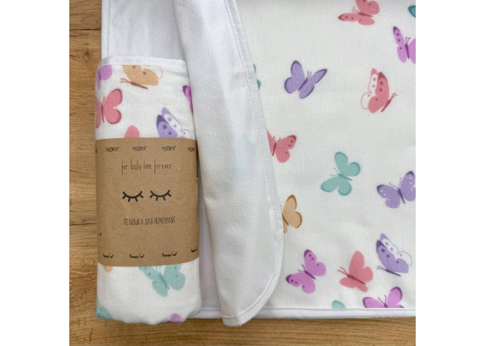 Непромокаюча пелюшка Фланель/Мембрана Метелики рожево-мятні