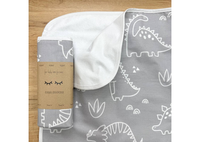 Непромокаюча пелюшка Поплін/Мембрана Діно на сірому 45х75