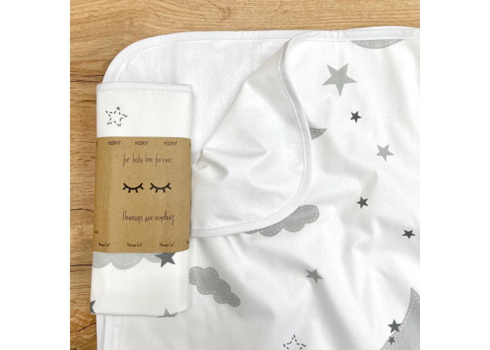 Непромокаюча пелюшка Поплін/Мембрана Хмаринки сірі з місяцем