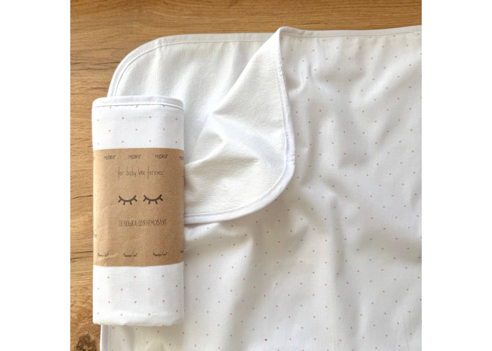 Непромокаюча пелюшка Поплін/Мембрана Крапка пудра на білому 45х75