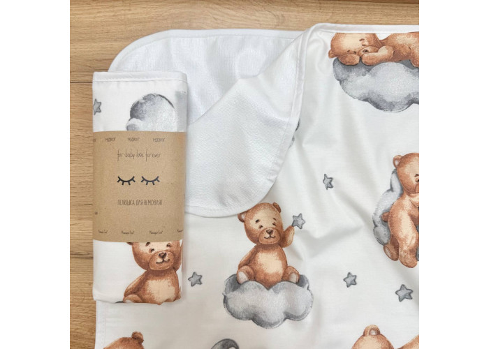 Непромокаюча пелюшка, розмір 50х80 - одна сторона виконана з попліну, а інша з непромокаючої мембранної тканини.