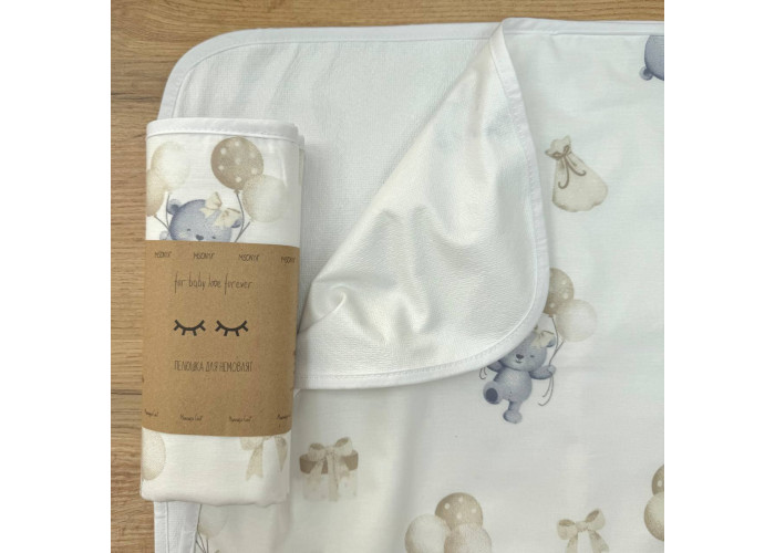 Непромокаюча пелюшка Поплін/Мембрана Ведмедик на повітряній кульці джинс