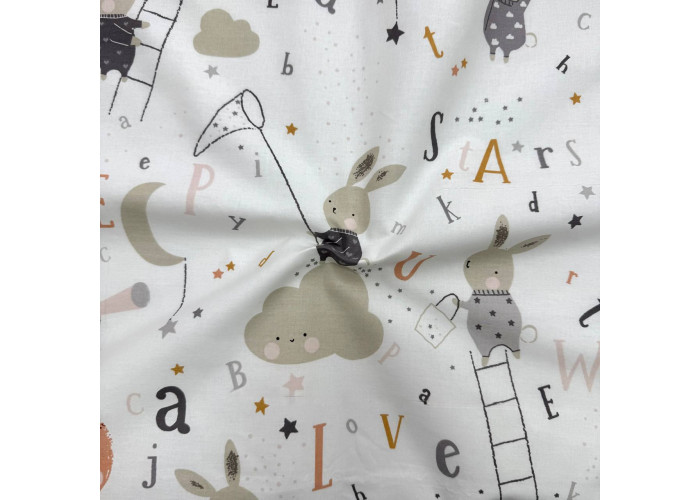 Непромокаюча пелюшка Поплін/Мембрана Зайці на драбинці бежевий 45х75