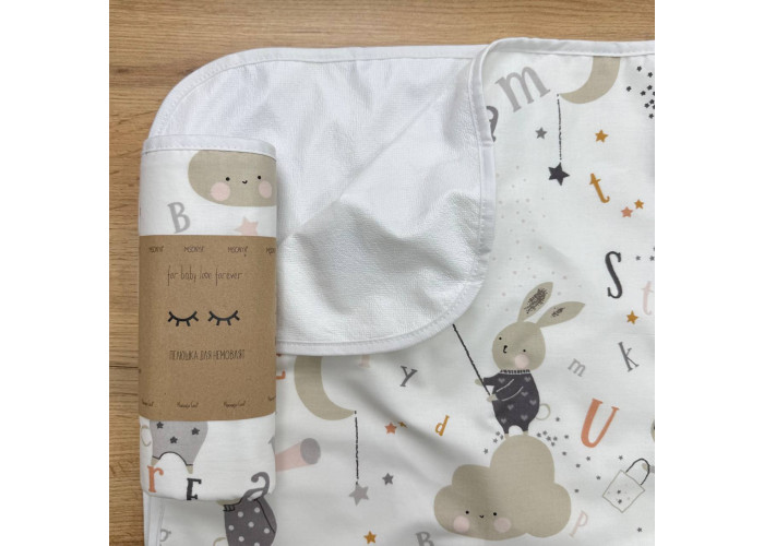 Непромокаюча пелюшка, розмір 45х75 - одна сторона виконана з попліну, а інша з непромокаючої мембранної тканини.