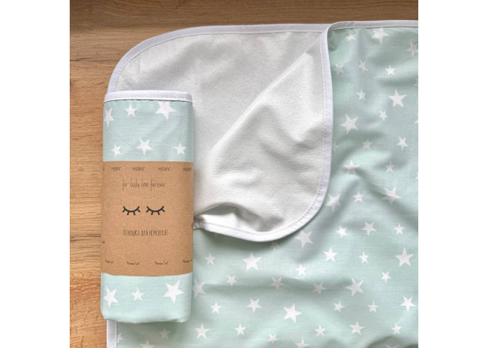 Непромокаюча пелюшка Поплін/Мембрана Зірка розсип біла на мяті 45х75