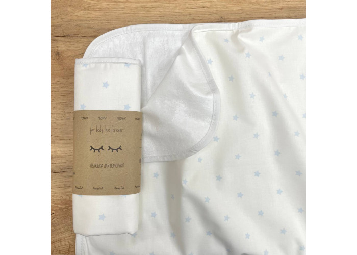 Непромокаюча пелюшка, розмір 50х80 - одна сторона виконана з попліну, а інша з непромокаючої мембранної тканини.