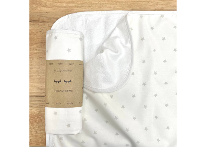 Непромокаюча пелюшка Поплін/Мембрана Зірка розсип сіра на білому 45х75