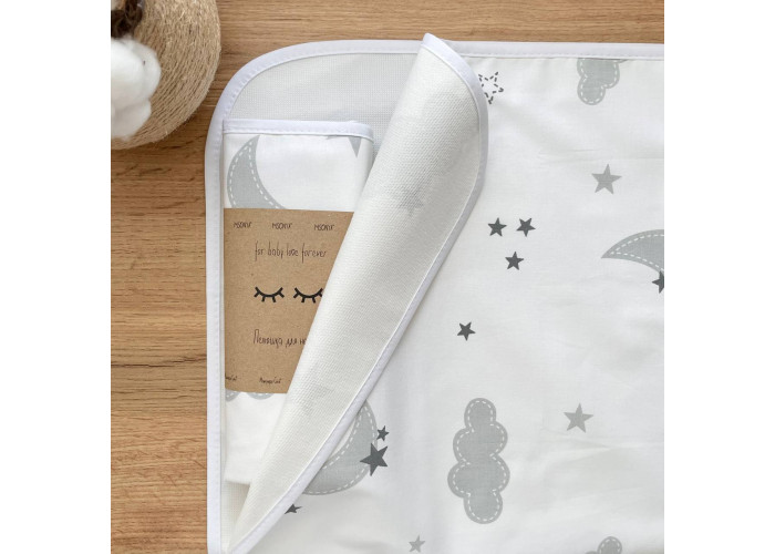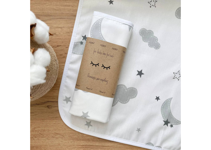 Пелюшка непромокаюча Хмаринки сірі з місяцем Маленька Соняхлопецьз малюнкомсірий50х80 +/-2см