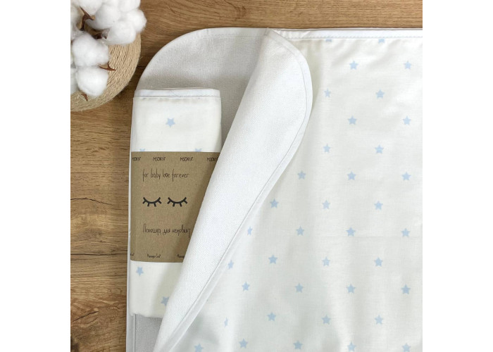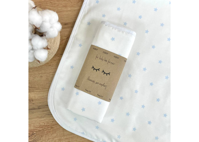 Пелюшка непромокаюча Зірка розсип дрібна блакитна на білому Маленька Соняхлопецьз малюнкомблакитний