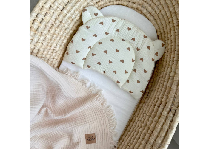 Подушка з вушками призначена для новонароджених дітей та немовлят. Завдяки компактним розмірам, подушечка добре увійде як до дитячого ліжечка, так і до стандартного візочка.