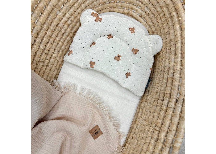 Подушка з вушками призначена для новонароджених дітей та немовлят. Завдяки компактним розмірам, подушечка добре увійде як до дитячого ліжечка, так і до стандартного візочка.
