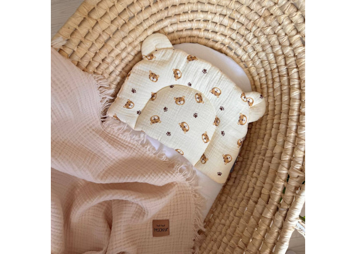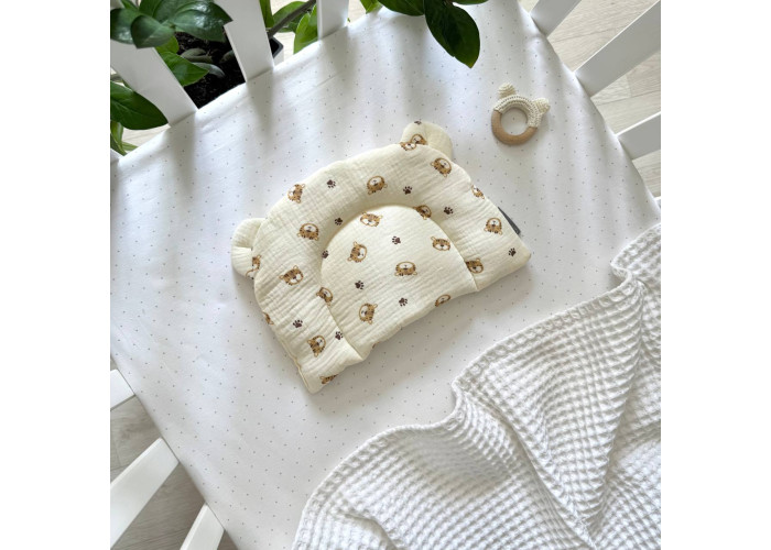 Подушка з вушками призначена для новонароджених дітей та немовлят. Завдяки компактним розмірам, подушечка добре увійде як до дитячого ліжечка, так і до стандартного візочка.