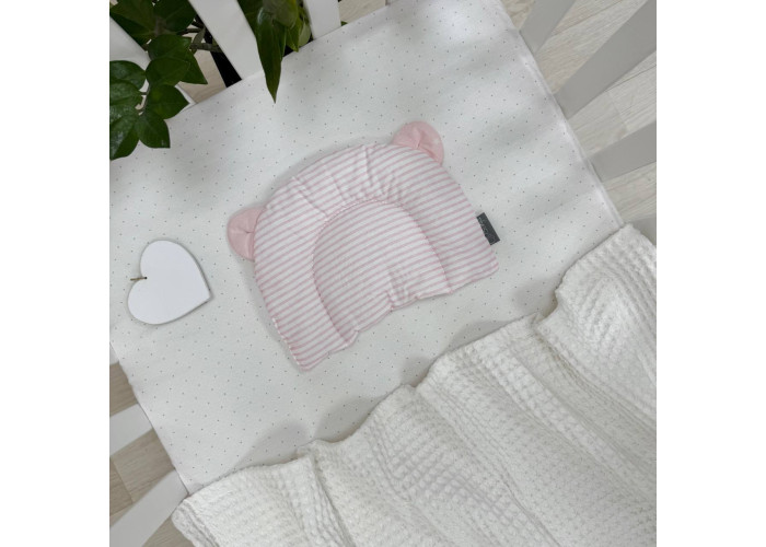Подушка з вушками призначена для новонароджених дітей та немовлят. Завдяки компактним розмірам, подушечка добре увійде як до дитячого ліжечка, так і до стандартного візочка.
