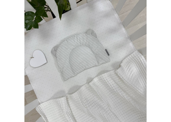 Подушка з вушками призначена для новонароджених дітей та немовлят. Завдяки компактним розмірам, подушечка добре увійде як до дитячого ліжечка, так і до стандартного візочка.