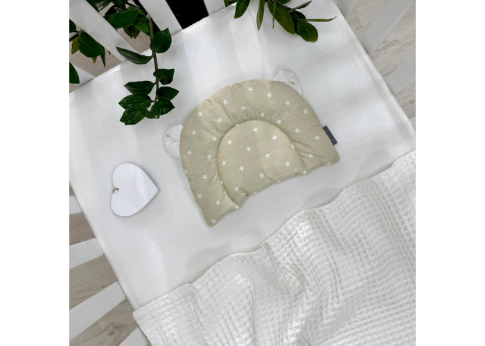 Подушка з вушками призначена для новонароджених дітей та немовлят. Завдяки компактним розмірам, подушечка добре увійде як до дитячого ліжечка, так і до стандартного візочка.