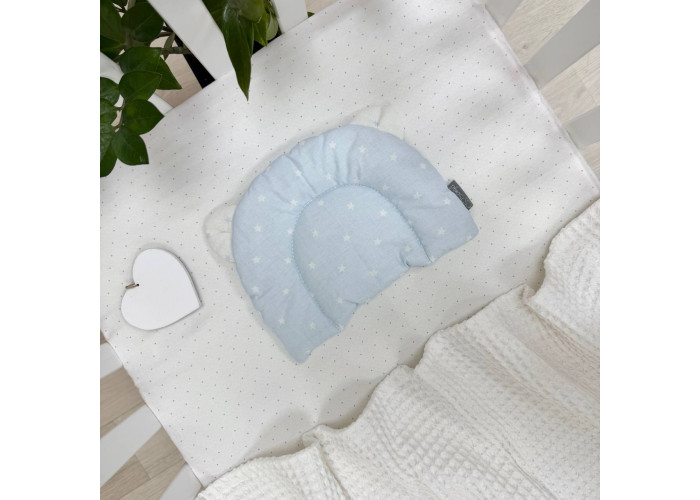 Подушка з вушками призначена для новонароджених дітей та немовлят. Завдяки компактним розмірам, подушечка добре увійде як до дитячого ліжечка, так і до стандартного візочка.