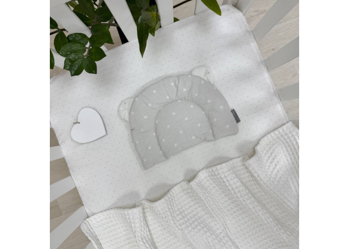 Подушка з вушками призначена для новонароджених дітей та немовлят. Завдяки компактним розмірам, подушечка добре увійде як до дитячого ліжечка, так і до стандартного візочка.