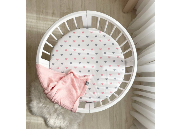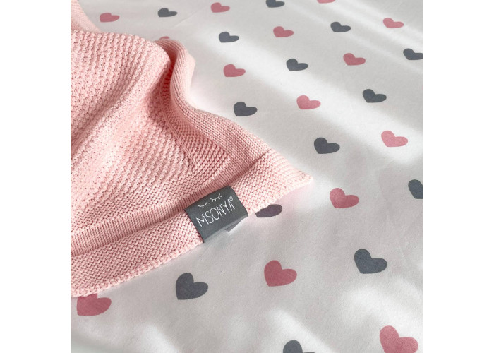 Простирадло дитяче Сердечка сіро-пудрові на білому 70х70