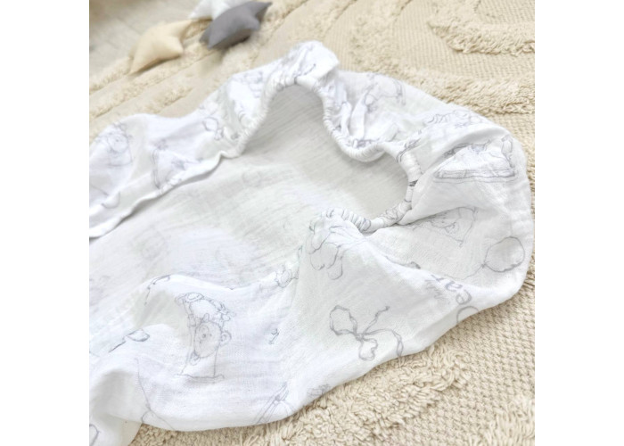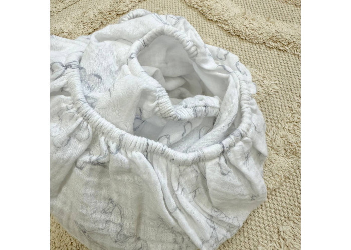 Простирадло муслінове на гумці у візочок. Простирадло виготовлене з двошарового мусліну, тканини, що пропускає повітря та подарує комфорт і зручність вашому малюку.