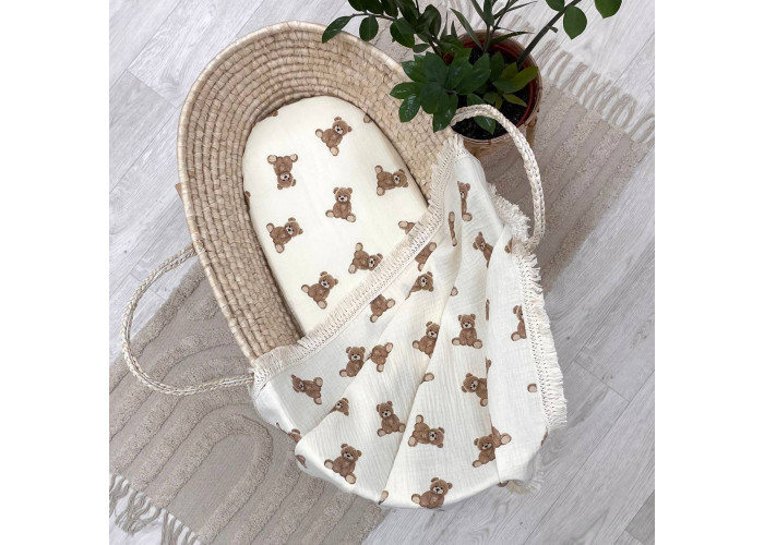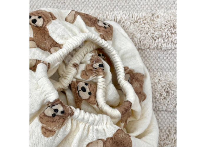 Простирадло муслінове на гумці у візочок. Простирадло виготовлене з двошарового мусліну, тканини, що пропускає повітря та подарує комфорт і зручність вашому малюку.