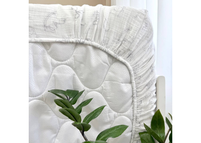 Простирадло пошито з двошарового мусліну - натурального 100% бавовняного матеріалу.