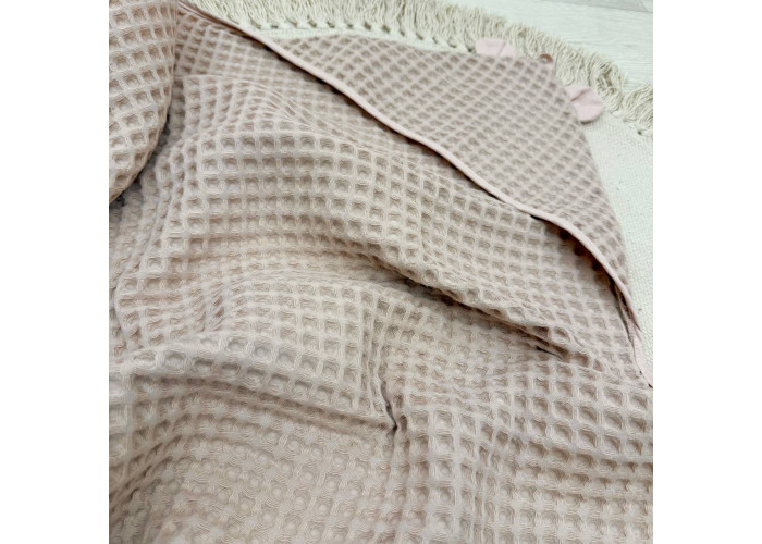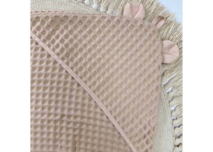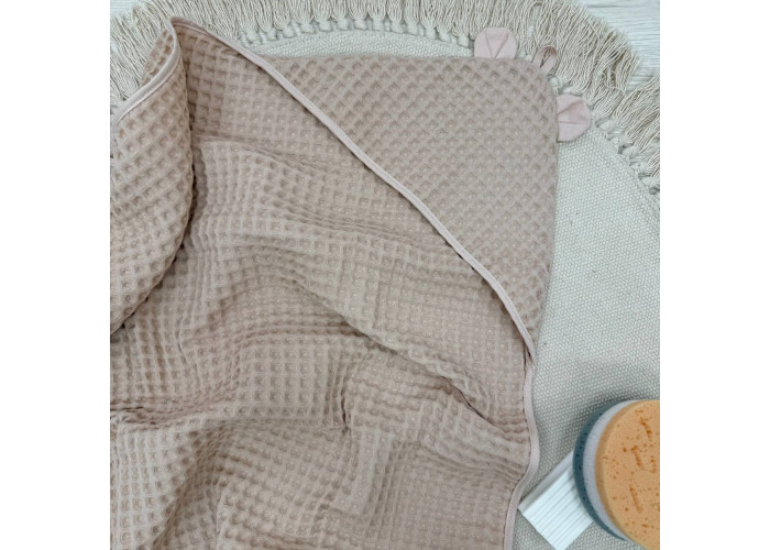 Рушник-куточок з капюшоном виготовлено з рельєфної, щільної вафельної тканини, що дихає, відмінно вбирає вологу. Рушник з капюшоном ідеально підходить для ніжної чутливої шкіри новонародженого малюка після купання вдома.