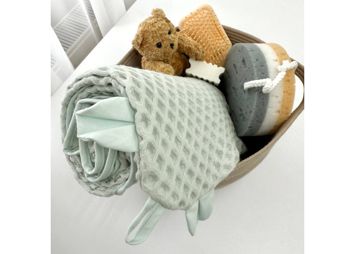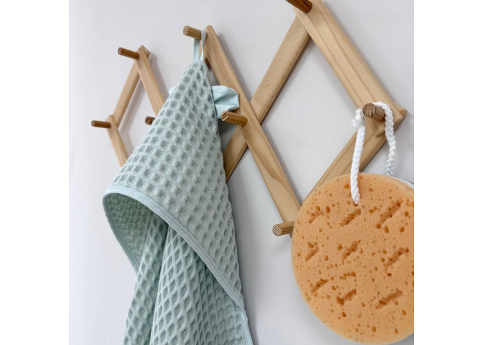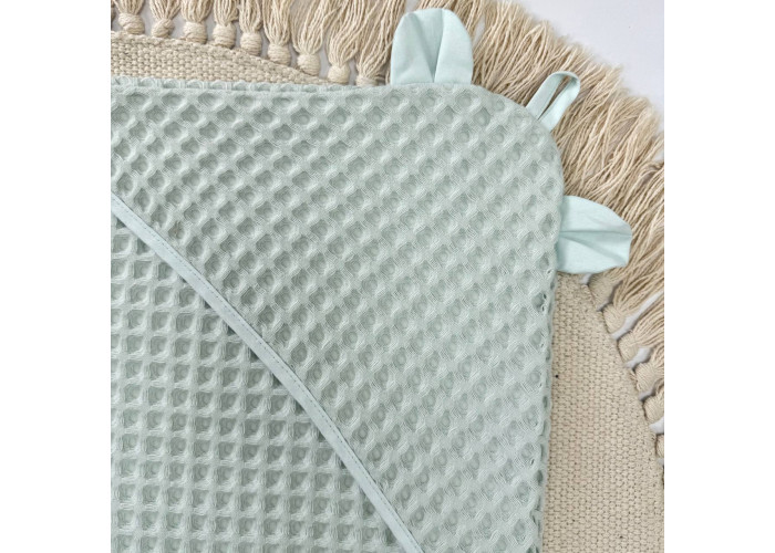 Рушник-куточок з капюшоном виготовлено з рельєфної, щільної вафельної тканини, що дихає, відмінно вбирає вологу. Рушник з капюшоном ідеально підходить для ніжної чутливої шкіри новонародженого малюка після купання вдома.
