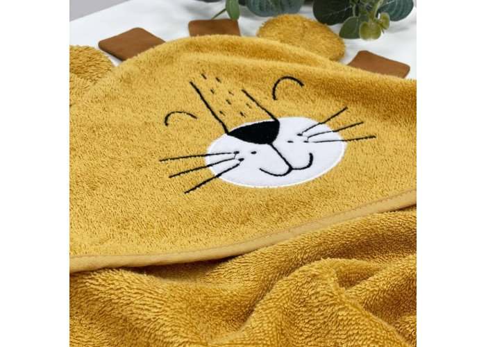 М'який, махровий рушник-куточок з кумедним капюшоном-звірятком виготовлено з ніжної, але в той же час досить міцної бавовняної двосторонньої махрової тканини, що дихає, відмінно вбирає вологу. Рушник з капюшоном ідеально підходить для ніжної чутливої шкіри новонародженого малюка після купання вдома.
