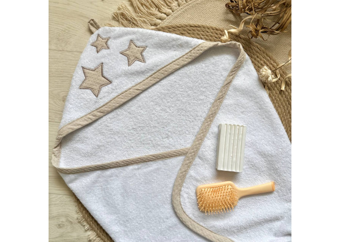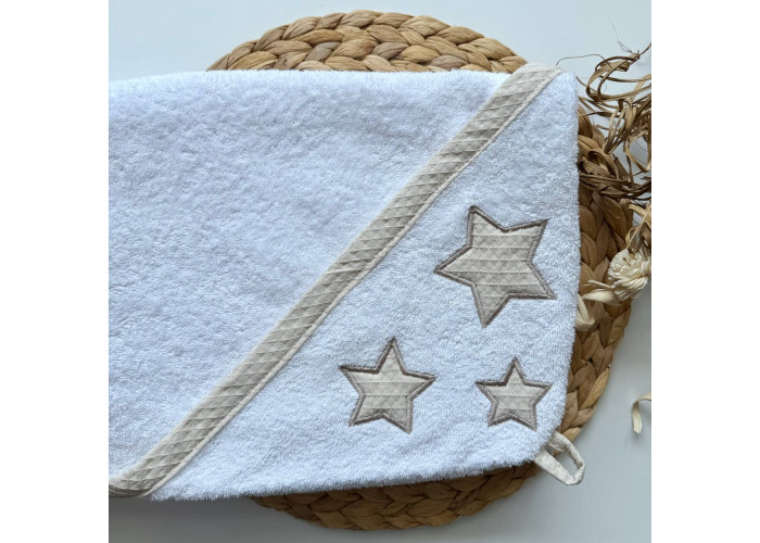 М'який, махровий рушник-куточок з капюшоном, окантований по периметру вафельною тканиною. Рушник з капюшоном ідеально підходить для ніжної чутливої шкіри новонародженого малюка після купання вдома.