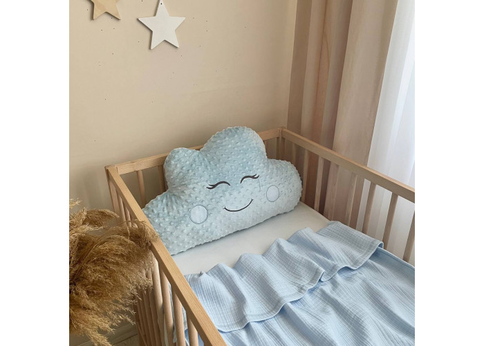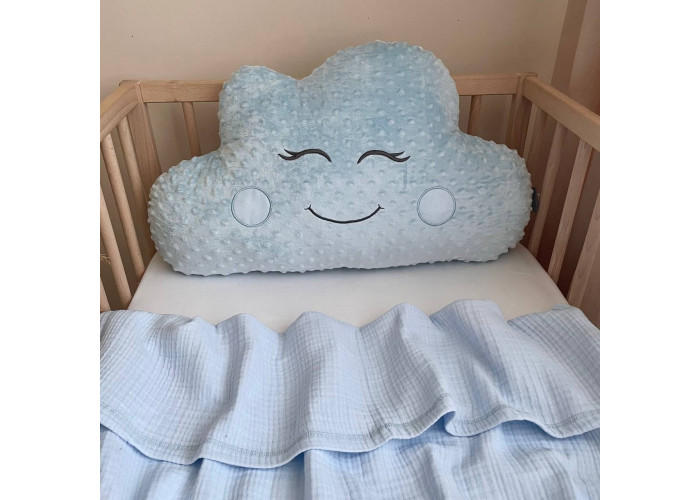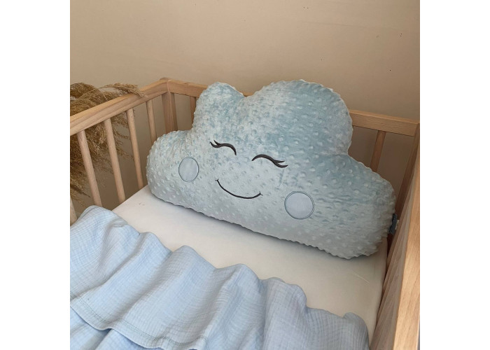 Красива та оригінальна подушечка у формі хмари для дитячого ліжечка. Прати рекомендується в режимах прання "ручне" або "делікатне", при температурі 30-40 ° C, щоб уникнути деформації тканини, акуратно полоскати, дбайливо віджимати. Прання бажане з ополіскувачем або кондиціонером, тоді тканина стане м'якшою і легшою гладиться. Миючі засоби, що містять відбілюючі речовини та хлор, можуть зіпсувати тканину, тому їх застосування та хімчистка заборонені!