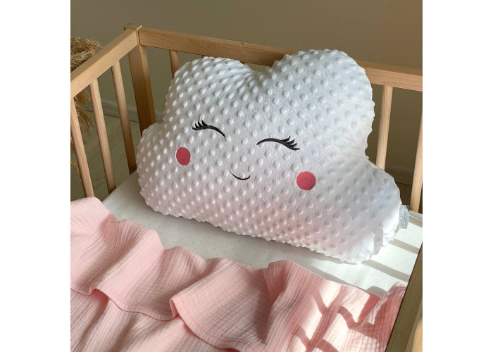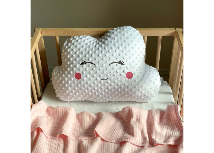 Красива та оригінальна подушечка у формі хмари для дитячого ліжечка. Прати рекомендується в режимах прання "ручне" або "делікатне", при температурі 30-40 ° C, щоб уникнути деформації тканини, акуратно полоскати, дбайливо віджимати. Прання бажане з ополіскувачем або кондиціонером, тоді тканина стане м'якшою і легшою гладиться. Миючі засоби, що містять відбілюючі речовини та хлор, можуть зіпсувати тканину, тому їх застосування та хімчистка заборонені!