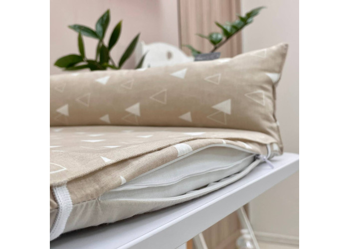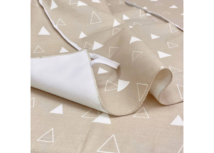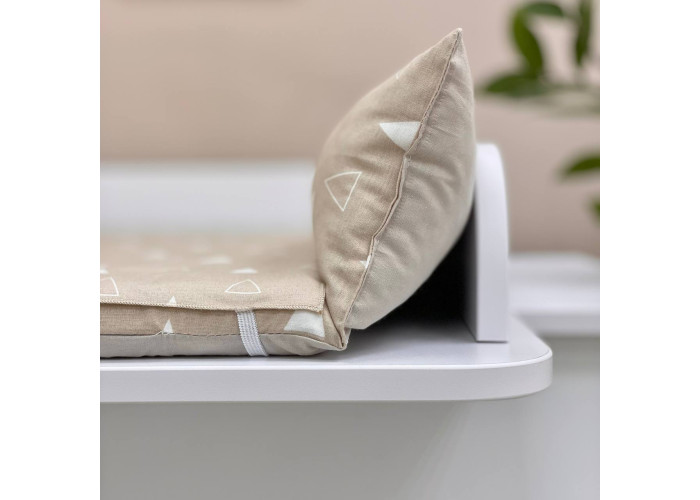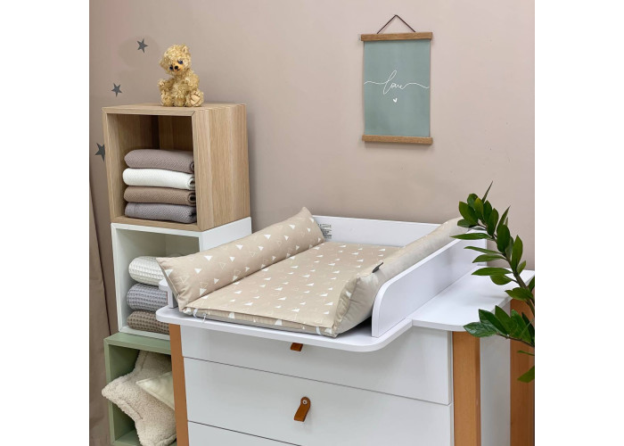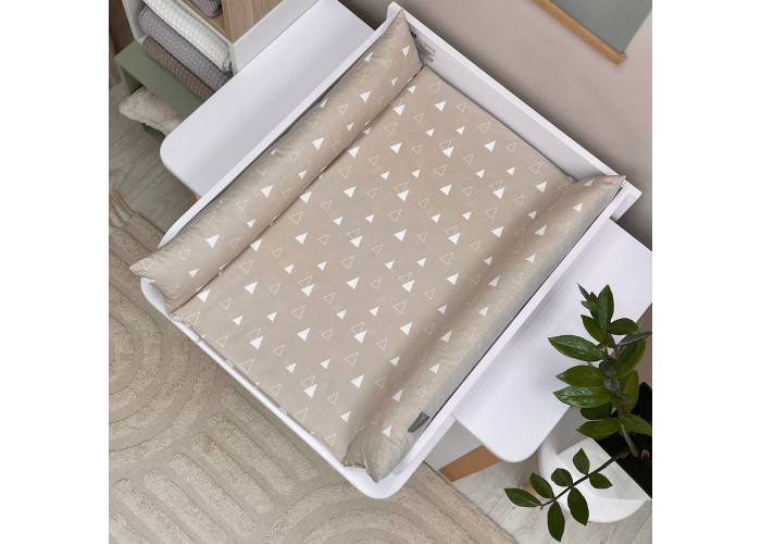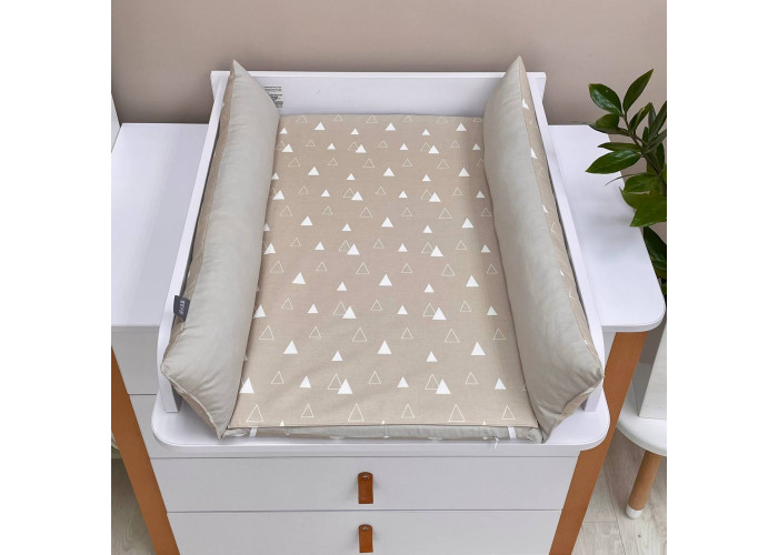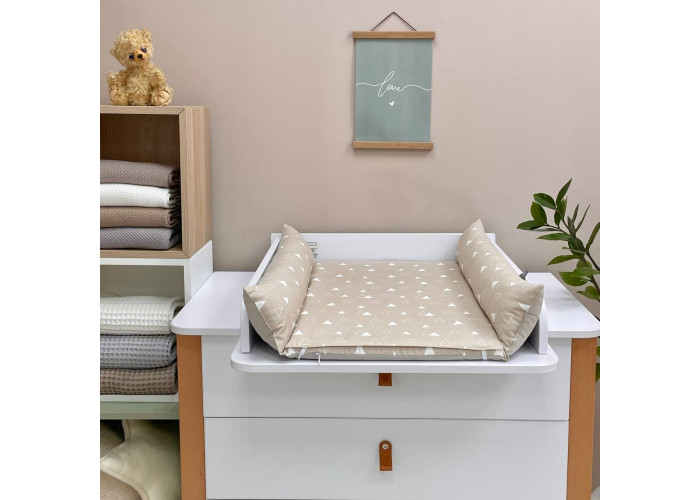 Пеленальний матрацик з м'якими обмежувальними бортиками, висотою 10 +/- 2см - призначений для використання на твердій поверхні. Наповнювач матрацика -піна, пружний, сучасний, модифікований матеріал, який рівномірно розподіляє навантаження, завдяки чому малюк почувається затишно та комфортно. На чохол матрацика одягнене непромокаюче простирадло на гумці.